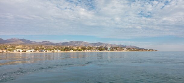 Boats leave from the beach town of La Ventana. From Los Cabos take a 2 – 2.5 hour drive along the Pacific road (Highway19) almost to La Paz before crossing country to the east coast. There are quaint little villages and windy mountain roads along the way: the drive is very scenic.
